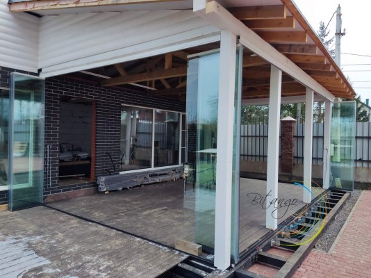 - Сфера применения: безрамное остекление террасы (как частных домов, так и ресторанов и кафе), веранды, беседки, лоджии или балкона, для разграничения внутренних пространств.